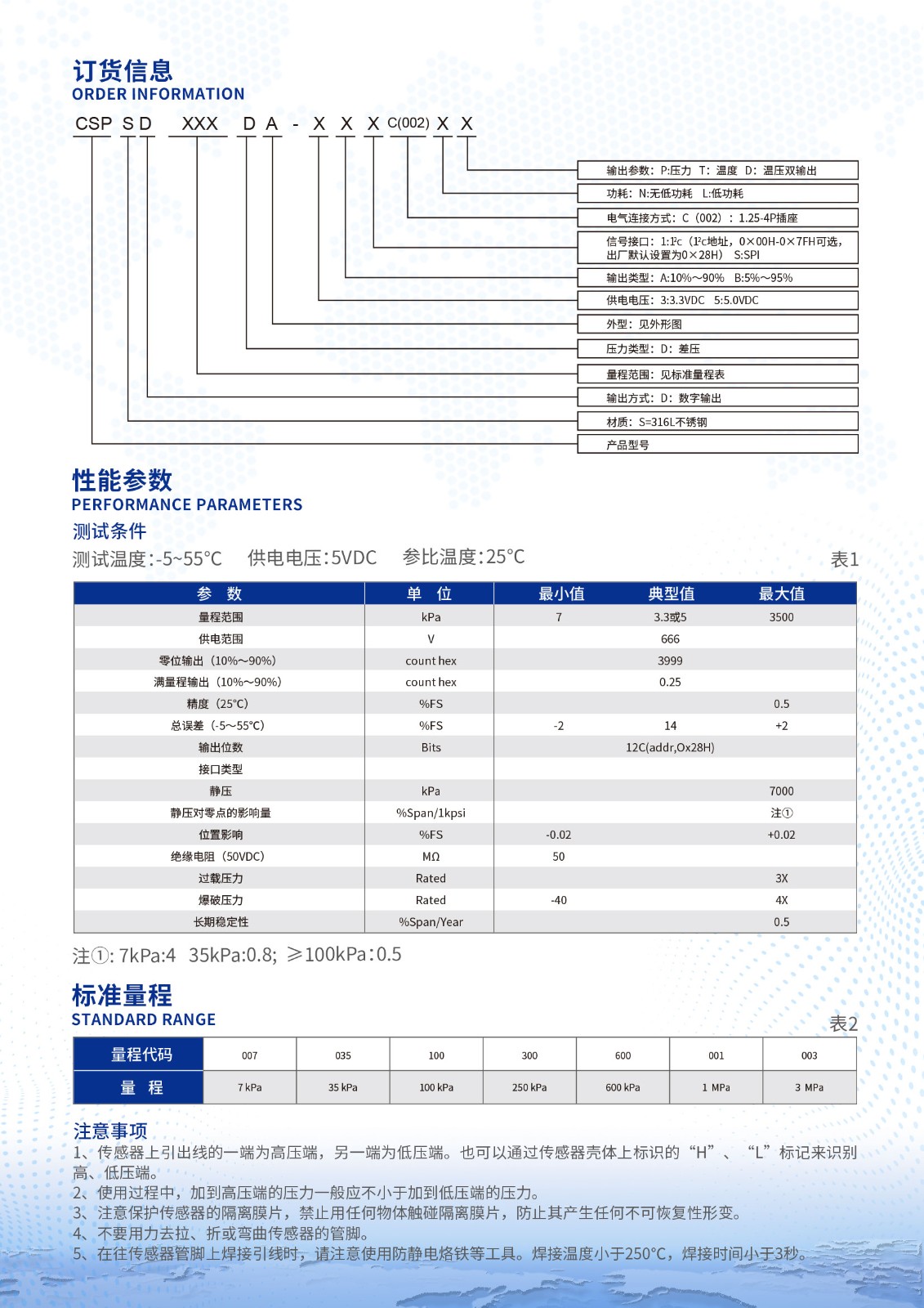 CSPSD帶壓力接頭數字輸出硅壓阻式隔離膜差壓傳感器